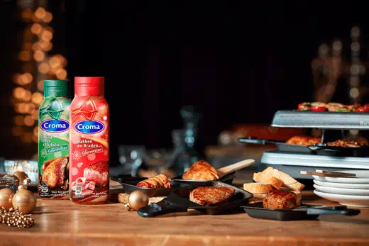 - Verhit op hoog vuur 5 eetlepels Croma Bakken en Braden Vloeibaarin een braadpan en wacht tot de Croma bruin kleurt. Bak nu de stukken vlees rondom aan. Geregeld omscheppen.